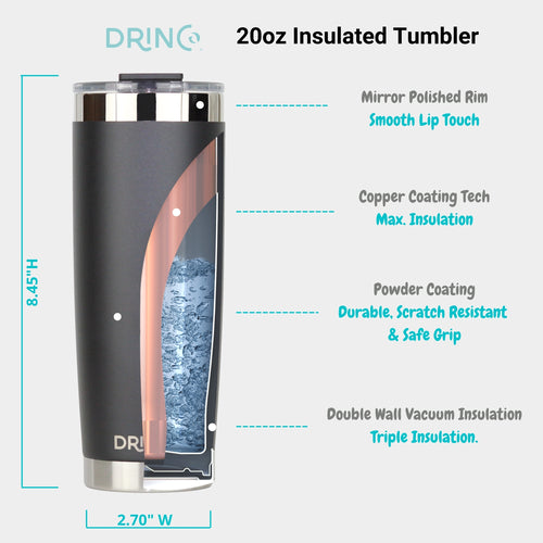 DRINCO® 20oz Insulated Tumbler w/Spill Proof Lid, 2 Straws(Black)